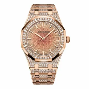 Audemars Piguet Royal Oak 15402OR.ZZ.D003CR.01 Rose Gold Pave Diamond Dial and Bezel 41mm Men’s Watch